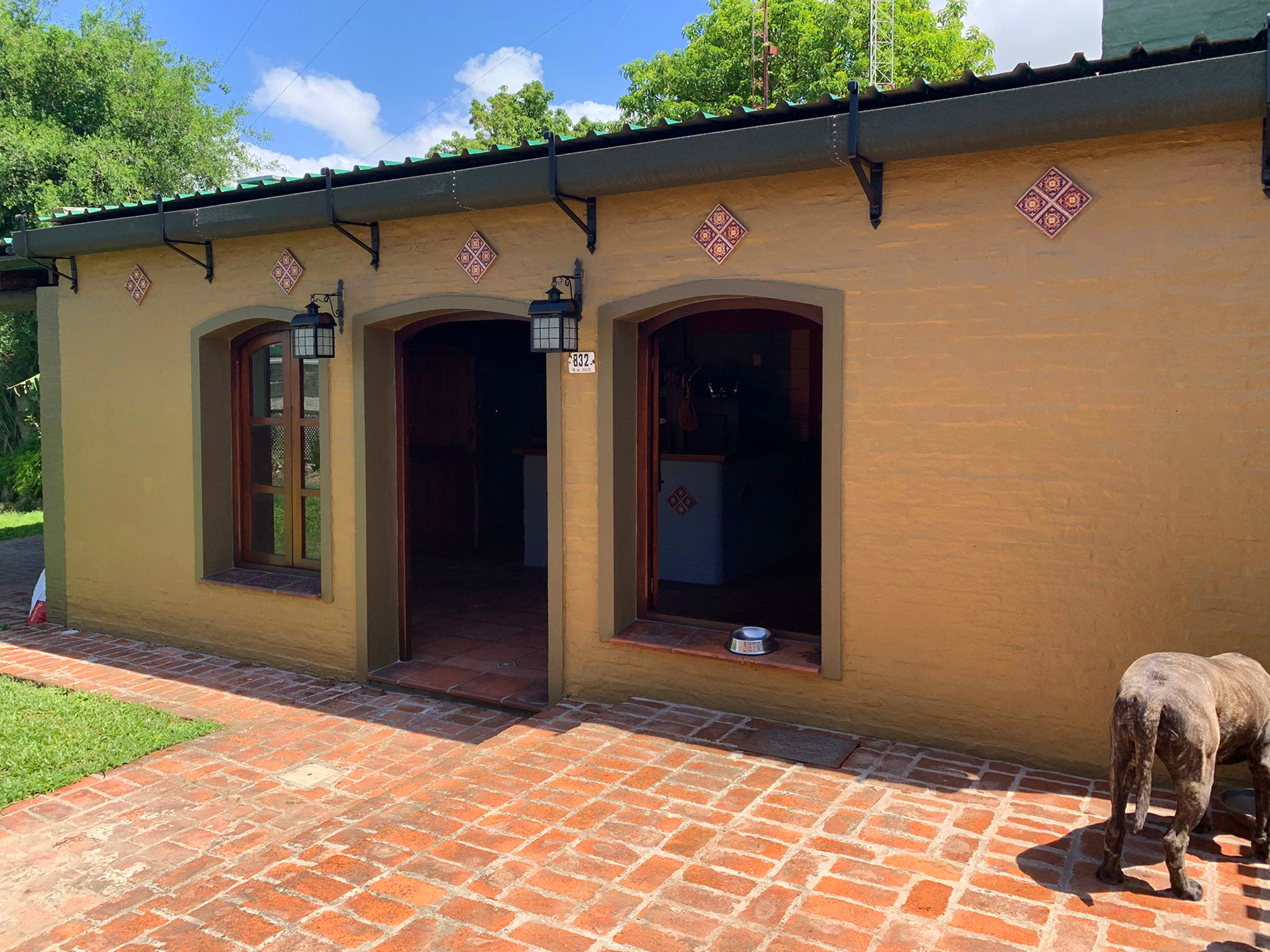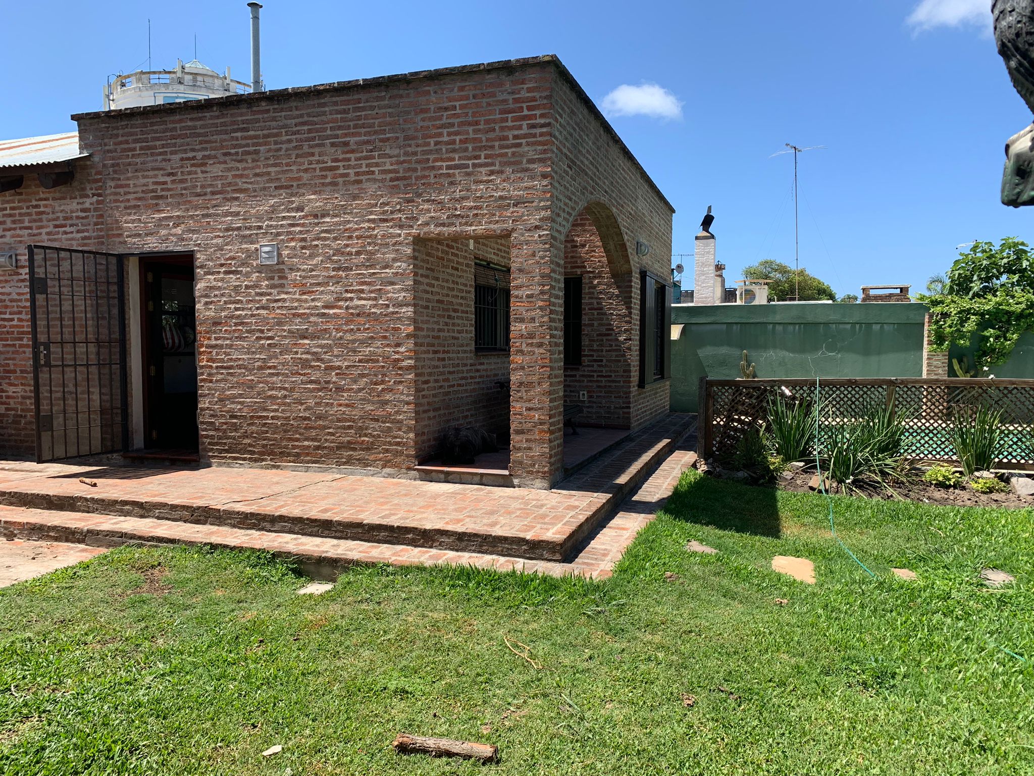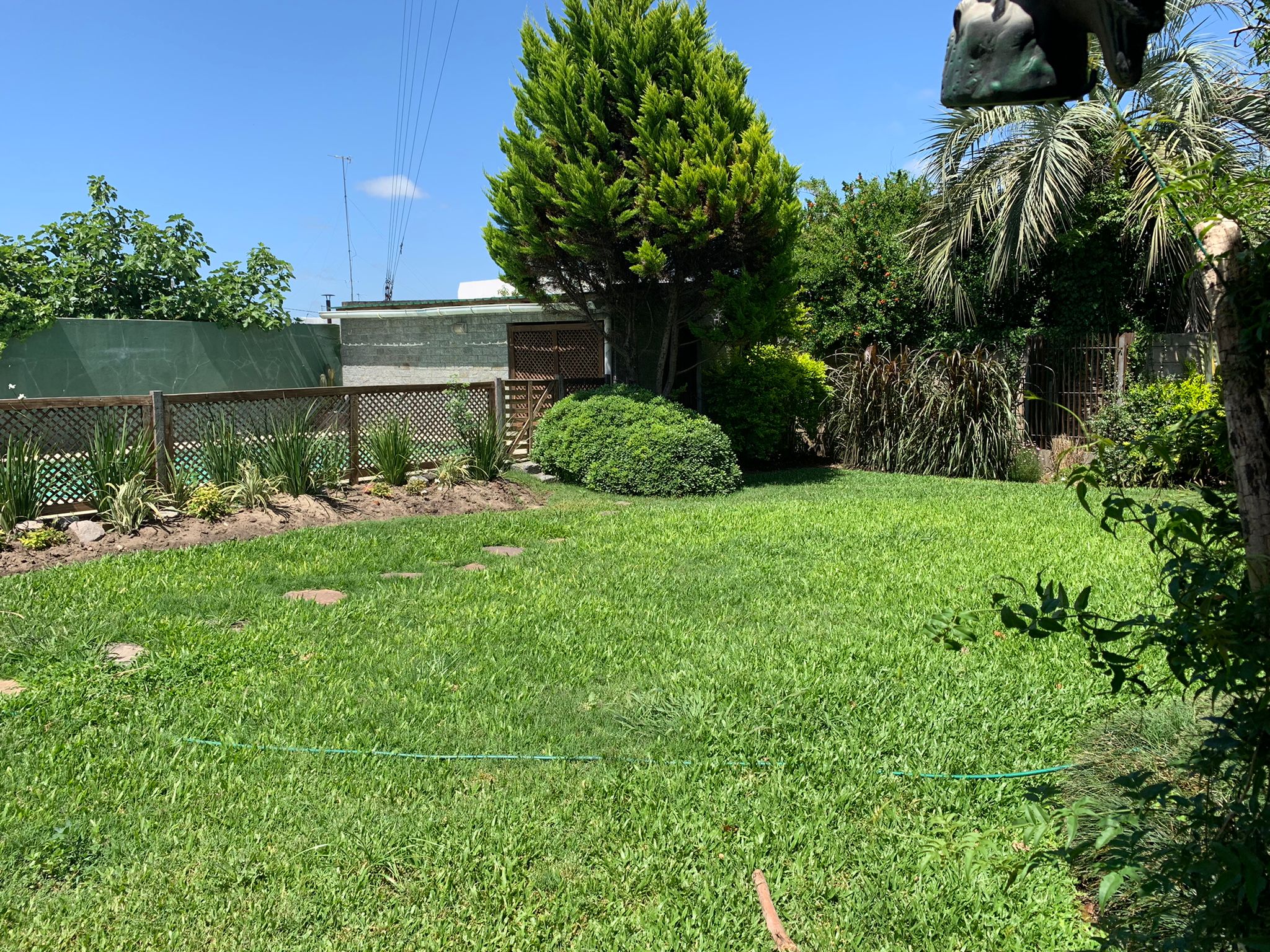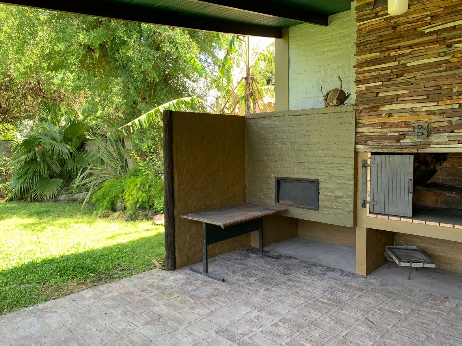 Jardin, cochera doble, espacio para varios vehiculos, jardin al fondo, parrillero exterior, barbacoa cerrada con baño, lavadero, piscina y deposito.